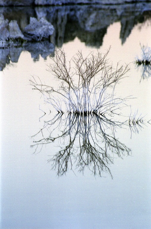 Z Tahoe jsme se vydali konečně k Mono. Cestou jsme stavěli u horkých pramenů. To je takové báječné zařízení, kam přijedete, sundáte kožich, sundáte triko, a když jste nahatý, tak si vlezete do teploučké vody, nad váma borovice, proti vám zasněžené hory... je tam jeden přirodní bazének tak pro dva na kopci a pak ještě stékají prameny do řeky. To je hrozná legrace, protože sedíte u jednoho břehu horské říčky ve vodě, pěkně se čochtáte a u druhého břehu visej rampouchy. Jediný negativum na tomhle celým je to, že dříve nebo později MUSÍTE z vody vylézt. Tyhle prameny mají ještě jedno plus - jsou přírodní neveřejné, takže se v nich můžete koupat nahatý.