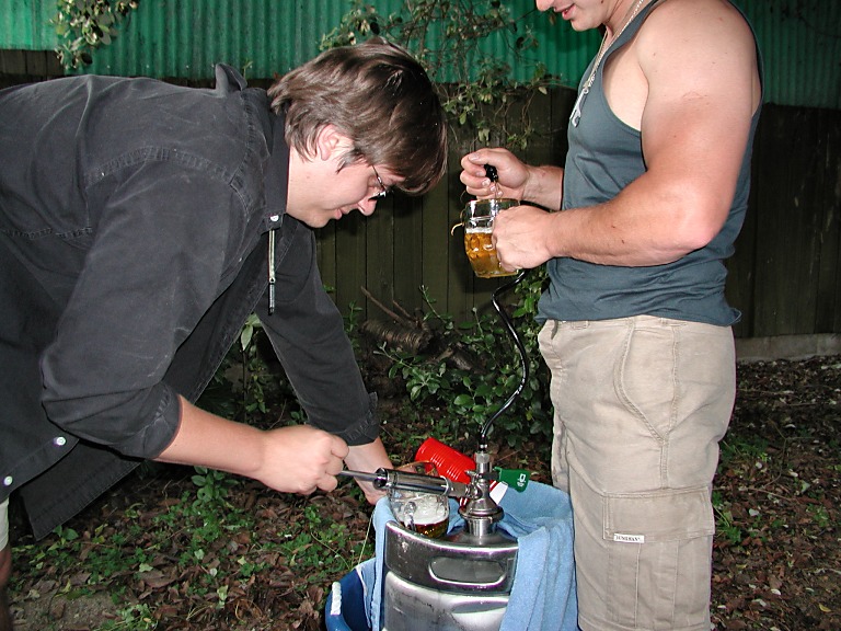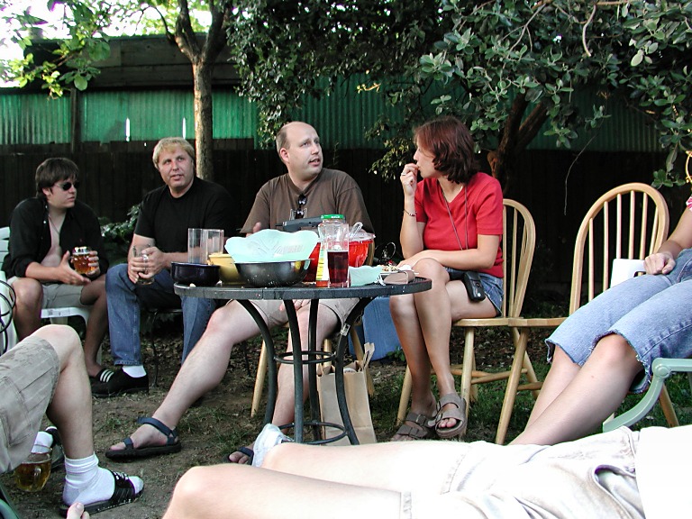 Odjeli jsme domů, trochu se prospali, skočili na oběd a plynule pokračovali k cíli mnohem přijemnějšího pozvání - kamarád Petr zakoupil padesátilitrový soudek výborného piva a sezval poměrně početnou společnost ke svému bytnému na zahradu.