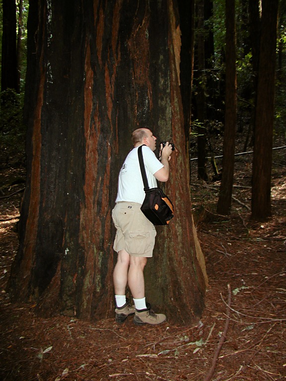 At Big Basin we chose a looping train about 6 kilometers long that included a waterfall. Though a parking lot was crammed full, in the end we were not encountering a lot of people, perhaps those four miles would be too much of a load on a family on a Sunday hike. The more we were to smell sausages being grilled on remote, fully occupied campgrounds, and once we caught a whiff of an intense aroma of burned vegetables... well, nothing beats eating out in the wilderness. We enjoyed it anyway, our trail led through a real rain forest, and the redwoods are simply grand.