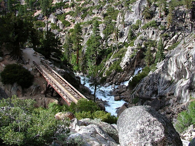 | At this first bridge we were still unaware that we would hike up to the level of the top of the mountain in the background |