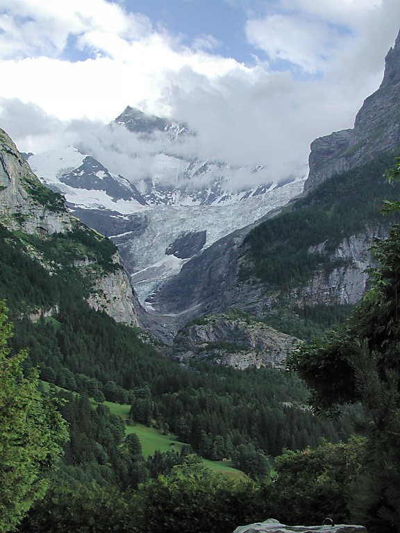 It gave us some hope, but looking up, we found that taking the train today would only bring us into clouds and fog. We had to invent some clever progam suitable for an ill man (i.e. no big hiking) - and we remembered there was a creek and a gorge right outside the town. The creek flows out from under the glacier between Mönch and Eiger. The water has a medium gray color, which, combined with dark gray wall of a narrow, deep canyon gives you the image of the fairy-tale land of Mordor.