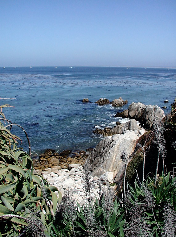 From the Aquarium, we drove along a beautiful rocky coast to Asilomar, to have lunch at Fishwife in Pacific Grove. It is fortunate that Líba happens to share mine and Sid's deviation, so we stopped often and photographed and taped enthusiastically. We even managed to get back in time to the Aquarium, where a diver tried to force some food into obviously overfed small sharks.