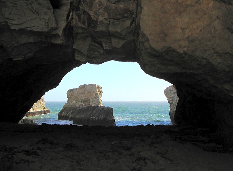 Returning over Highway 1 - a famous route along Pacific Coast -- took somewhat longer than driving on a freeway (and there was the usual jam around Santa Cruz), but I found again a tiny beach with a walk-through cave, which we already admired with Sid the other day.
