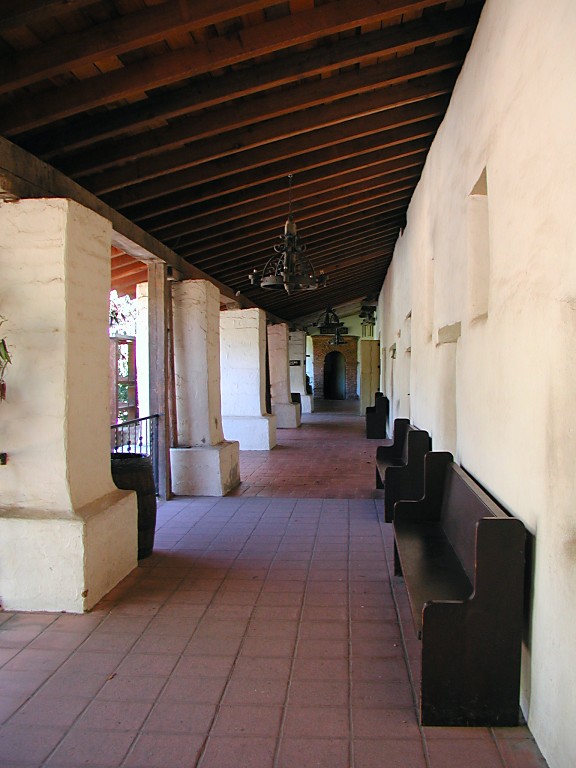 | The arcade of a mission is a pleasant sanctuary from the heat of the day |