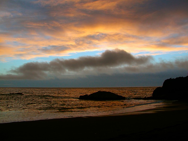 The evening found us driving out of the clouds, and we even got awarded by a sunset on Black Sand Beach. My regular phone call to Sid revealed, that more luck was coming, this time directly to my mom -- Sid relayed an invitation from William (the guy who kept meeting us during our previous trip) and his buddy Andrew, to a sailing on San Francisco Bay -- unfortunately only for one person. What would you not do for your own mother? In the morning, we drove straight for Silicon Valley, and by four in the afternoon, mom got on a train to Bayshore.
