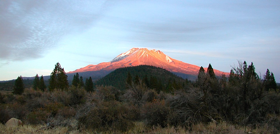 | Mt Shasta is found between Lassen NP a Crater Lake NP - at this time we skip intimate encounters and admire it only from a distance -- this fourteen thousand feet beauty is a demanding lady. |