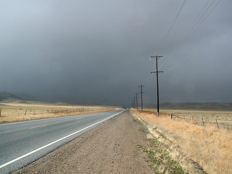 After another half an hour driving west, dark clouds started to overshadow our expedition. Literally, and mentally. It did not take long and I suddenly began to sympathize with Czech policemen who harass you with little details like mudflaps on your car. To pass a truck with a trailer during a rainstorm, and you can be sure it has no mudflaps, feels a little like falling into Niagara Falls. An hour later I sadly dropped the idea of Soda Lake. I would have been difficult to hike in the midst of all the mud and cold rain, and the road that leads to Soda Lake from south, is dirty for many tens of miles. There are steep slopes from both sides, with soil baked over eight months of dry California summer. It results in flash floods, at least at the beginning of rainy season. The soil does not soak up water, which flows freely, taking away houses, roads, crops -- water comes, does quick damage, and disappears. I did not desire to experience all that in person, especially not in a far away, deserted California Valley. We had no choice but to stay on paved, populated road and try to reach the ocean coast. So I fought through two more hours of Niagara falls, which demonstrated several surprising phenomena. For example, the frequency of windshield wipers in a rainstorm does not affect the windshield as much as it affects the stability of my stomach. I also discovered that even with all wheel drive, one can solidly hydroplane (which may have been influenced by our well worn-out tires), while our wagon clearly mastered muddy tongues washing out of fields and hills.