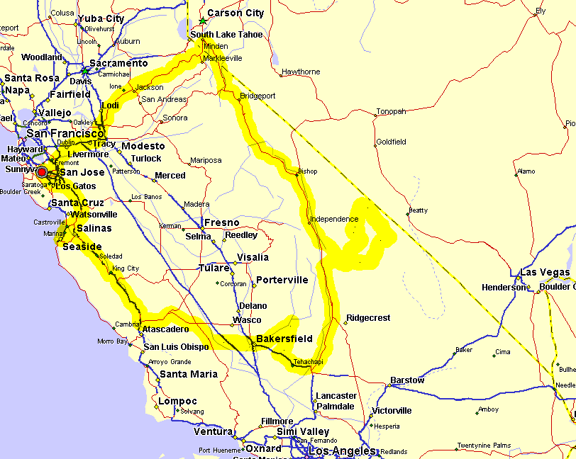 Motel owner at Ruby Inn, Bridgeport, knew right away who we were (could it be that we were the only ones who reserved their room over the internet?). He assured us that it was the last room he had, and answered our puzzled (Bridgeport is during the winter cut off from populous places by an impenetrable barrier of Sierra Nevada) question: all rooms were rented to skiers -- Kirkwood was only two hours away, and so were Mammoth Lakes to the south. He also informed us that regardless of whether we like to smoke or not, all rooms are non-smoking and always were, even back in the times when public smoking was legal in California. He said he was allergic to it and that smokers smell very bad; and when girls cleaned up a room after a smoker, it took them so long that the whole rent went into their pay, which he as the owner could not afford. We confirmed smokers to be the vermin of the humanity and hurried to our cozy, good smelling, and really exquisitely clean room.