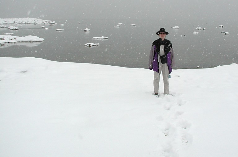 Another romantic surprise awaited us in the morning -- overnight, all the promised "bad weather" finally arrived into the desert, and it snowed about half a foot, and sun got out again. Sadly, during our breakfast at Hays Street Cafe, dark clouds took over again, and a full snowstorm caught up with us at Mono Lake. It lasted beyond Mammoth Lake, where we observed streams of disappointed skiers leaving south. Fog, wind, snow... nothing much. An so we, too, rolled on southwards and down, descending to Bishop, where we suddenly crossed the snow line and found ourselves in a "common" brown-green desert, the way we know it.