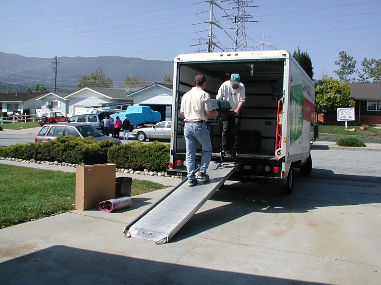Sid took a day off on Friday and kept packing and driving up and down, and packing and driving. He convinced Martin to join him on Saturday, for which I will be forever grateful, since I could leave boxes to these strong men and turn to little things, like cleaning the kitchen cabinets, washing out ancient marmalade spills -- I tried really hard not to imagine it being anything worse than that. We got up at six on Sunday and drove over to U-Haul to rent a moving truck. After eyeballing the offered options, we chose a slightly larger one than we first thought of, and I think it was a good choice. At eight, both Martin and Tomas joined us, and so the men could take turns, always two carrying some heavy piece and the third one coordinating their efforts.
