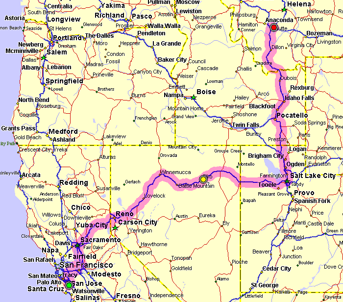 It's quite a distance to travel, yet that never bothered either of us. Listening to music we did not time for during a whole year, eating, talking, stopping to take pictures, admiring landscapes, we simply enjoy a relaxing time, when we do not have to do anything in particular. I must mention that the first part of our route is always somewhat humdrum -- crowded freeways in Silicon Valley, industrial zones around Oakland, agriculturally flat Central Valley around Sacramento. But all that ends half day later, traffic fades away, and scenery happens around. State of Nevada consists mostly of deserts, and they in turn consist of dirt, hills, and stiff brush. I like Nevada a lot, despite mushrooming Las Vegas and Reno. Vegas feels like county fair that has been going out of control for several decades -- trumpery and arrogant neons covered by a smog lid in the middle of a desert. Reno looks nicer, but is more gray inside and full of burnt-out, rumpled characters. Reno was the city we were driving through this time, and we would not have stopped; however, my Hippo was in need of feeding -- and one can get wonderful noodle soups at a Vietnamese restaurant with formica tables in downtown Reno.