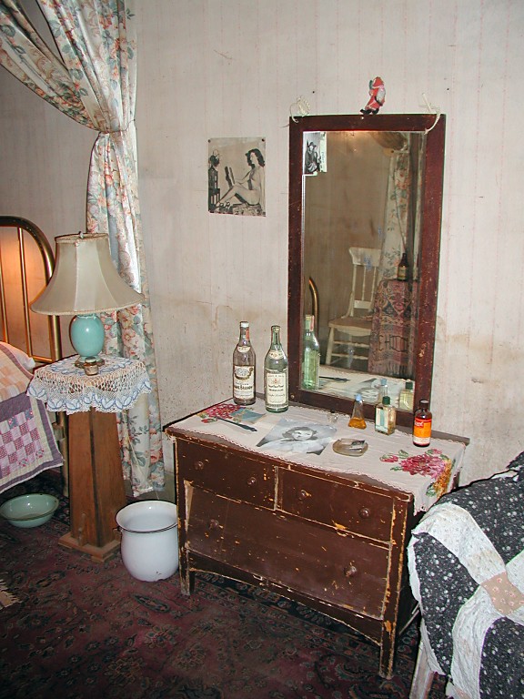 Every really old house has to have its own ghost. Rudy's brothel is haunted, too -- in room No. 20. Elinore Knott, the brothel's madam in 1955, had an arrangement to leave with a man of high power, a man who she thought loved her. She packed a suitcase and waited for man who never came. Finally she realized she was waiting in vain, she went back to her room and out of despair poisoned herself with pills. She can be occasionally spotted, dragging her suitcase back upstairs.