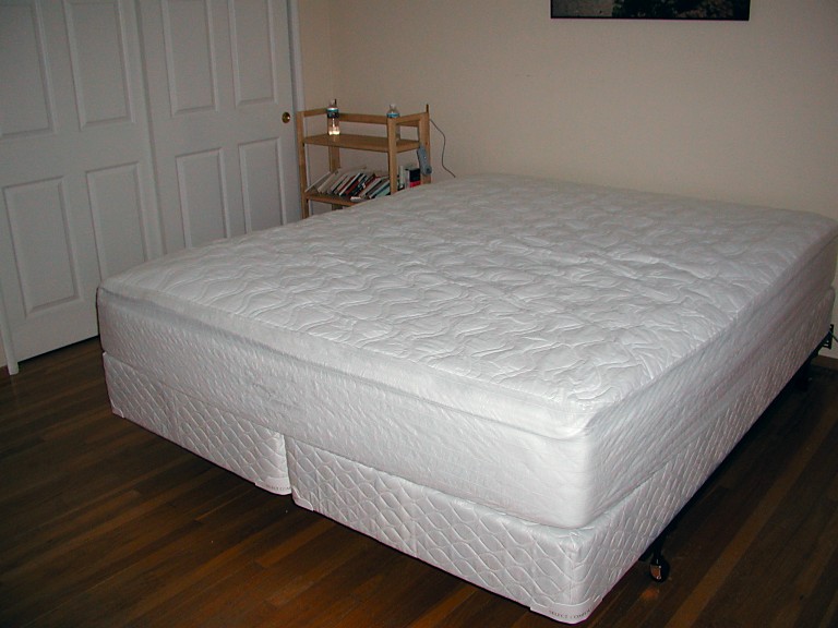 Zaplatili jsme pelech a odebrali se nakoupit povlečení. Futon totiž vlastníme v rozměru queen, a z takového Hrochovi přečnívají nohy; novou postel jsme koupili ve velikosti california king - našim prostěradlům tudíž začalo chybět asi třicet čísel na délku i na šířku. Pak už nezbývalo než se vydat domů a vyčkávat. Zanedlouho dorazili dva borci; nastěhovat a sestavit postel jim zabralo asi dvacet minut, optali se, jestli chceme odvézt tu starou (nechceme, jen ať si jí užijí návštěvy) a byli ti tam. Následující půlhodinu jsme strávili v posteli. Ne, žádné vášně, jen jsme si přifukovali a odfukovali každý svou půlku. Vot, těchnika!