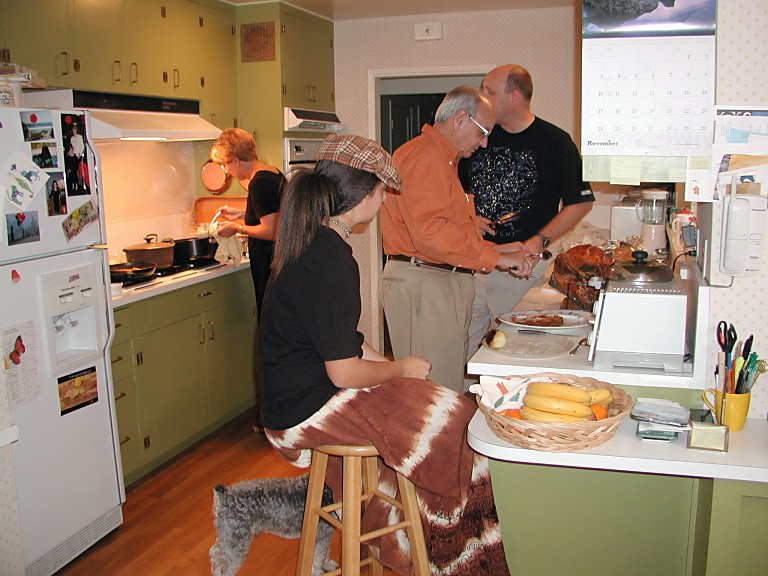 Přehlušen postelovými hrátkami se kvapem přiblížil Thanksgiving. Byl to už můj třetí Den díkuvzdání tady v Americe. Takové trochu deja vu - návštěva u Křenů, čekání na krocana, zápolení s upečeným krocanem, spousta vína. Tenhle svátek vonící výborným jídlem a dýchající teple rozpálenou troubou miluji. Taková příprava na vánoce, ovšem bez bláznivých Santa Clausů, sobů s červenýma nosama a dárkového šílenství. Jídlo je hlavní náplní dne, není jen předehrou k něčemu důležitějšímu (dárkům). A tak se může v pohodě sedět kolem stolu, klábosit, pojídat, popíjet a libovat si, jak se máme dobře.