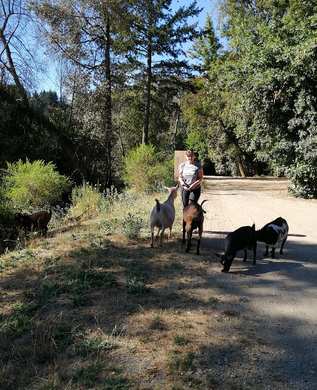 | Díky Pepe mám teď fotku toho, jak se mnou kozy chodí na pastvu. |