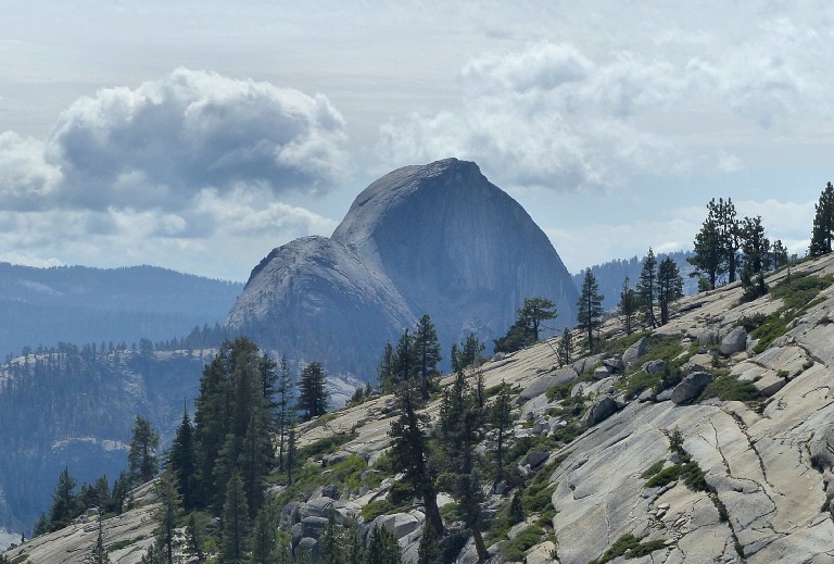 Point, ze kterého je vidět Half Dome. Tam už byly poryvy větru tak silné, že