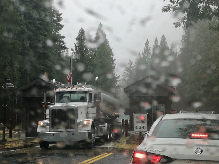 bylo pondělí, tj. všední den — byly strašné zácpy. Za Olmstead Point jsme