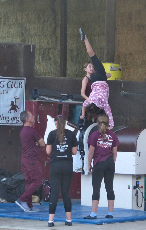 dvoufázově — na koni holky dělaly individuálně povinné sestavy, a týmovou