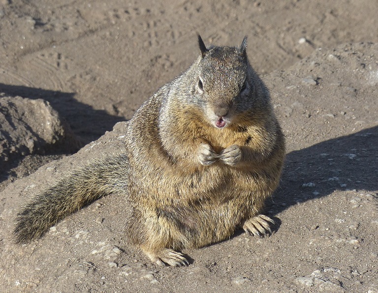 | Neukáznění turisté na Lovers' Point krmí veverky — a ty jsou pak takhle obézní. |
