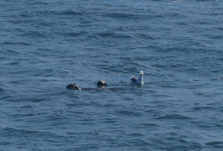 | Somrák racek čeká, jestli vydrám něco neupadne. |