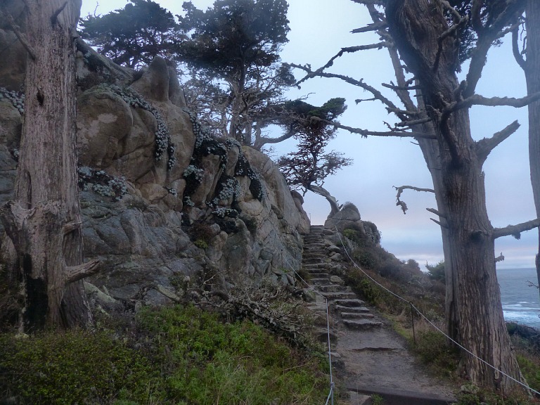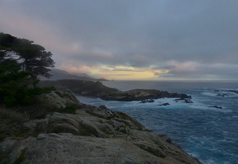 To už byl čas na oběd. V Moss Landing máme oblíbenou Lemongrass Thai, takže jsme se občerstvili tam a pak se konečně dokodrcali na Point Lobos. Ten splnil naše očekávání — Boris fotil jak o závod, čímž se naše procházka protáhla na neuvěřitelné tři hodiny, až do setmění. Ty dny těsně před zimním slunovratem jsou už krátké.