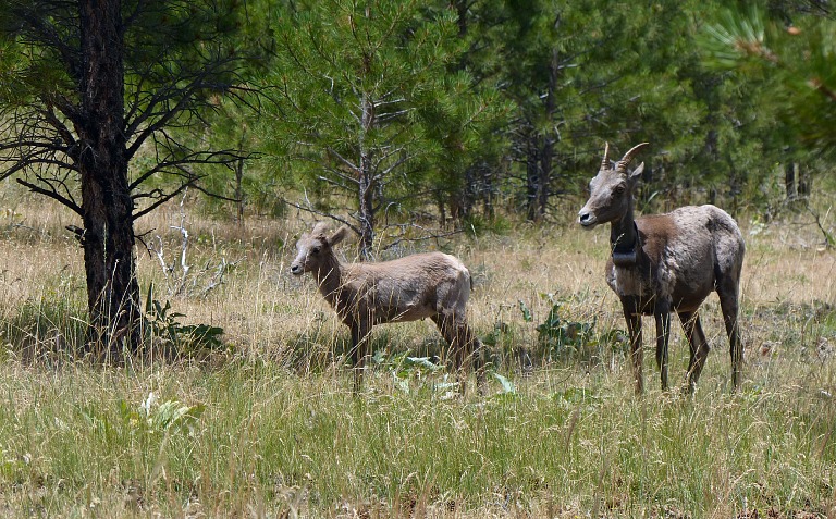 | Ovce tlustorohé jsme marně hledali ve Skalistých horách - tady se normálně pasou v kempu. |