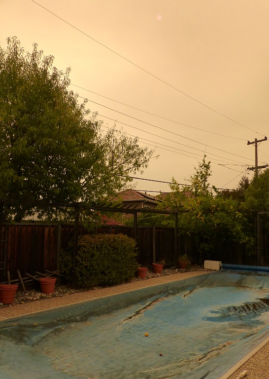 | When the wind turned the wrong way, we were engulfed in smoke again — the small dot in the middle is our eleven o'clock sun. |