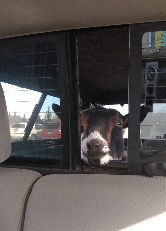 dramatic happened. Lisa and I loaded the goat into our Ford, and left Tom at