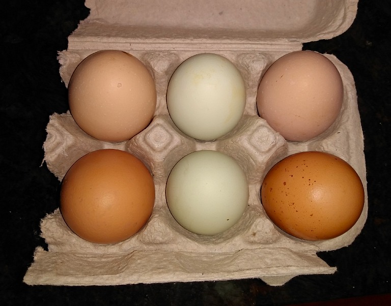 | Light brown eggs are from Jet, blue from Sasha a dark spotty ones from Pepper. |