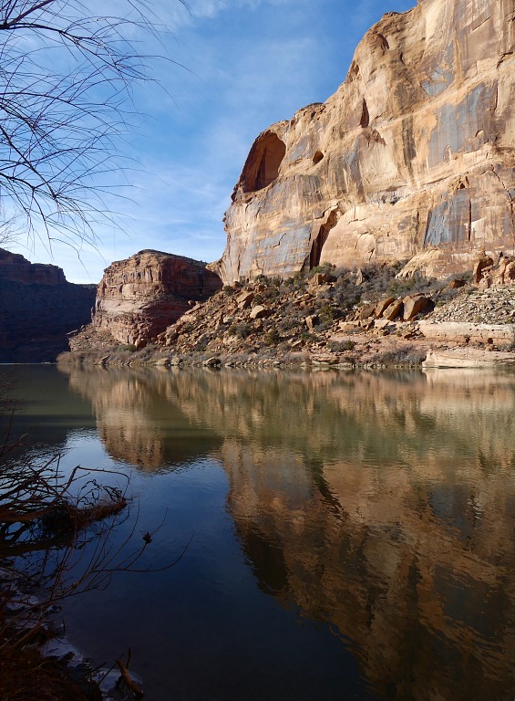 | Jedeme podél řeky Colorado k Fisher Towers. |