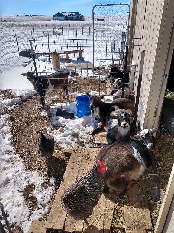 | Před chlívkem je závětří a sluníčko. |