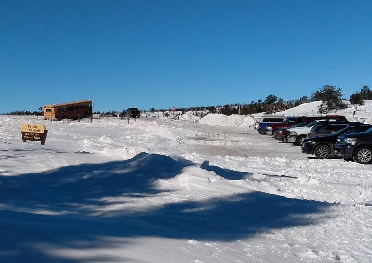 doby bývá parkoviště relativně upravené — alespoň ten sníh je odhrnutý.