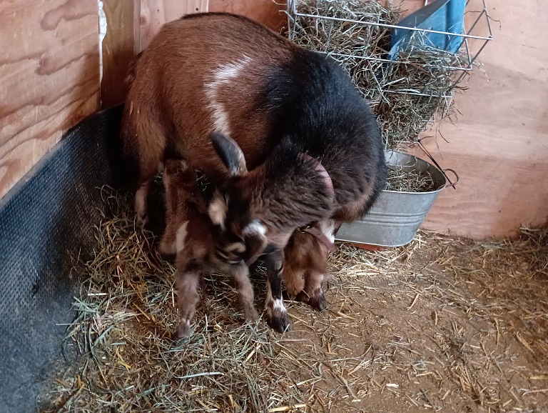kluci) si postupně očichala a začala čistit. To kůzlátka povzbudilo natolik,