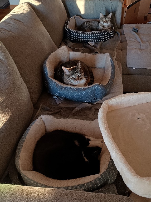 | Naše tři "venkovní" kočky. |