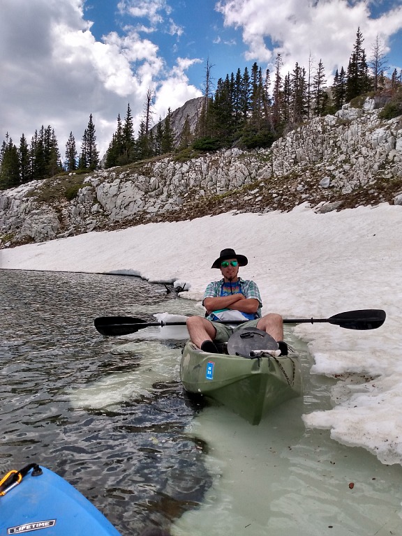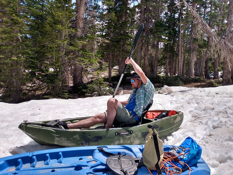s Tomem s kajaky. Ano, v místě, kde jsme před měsícem lyžovali, jsme tentokrát