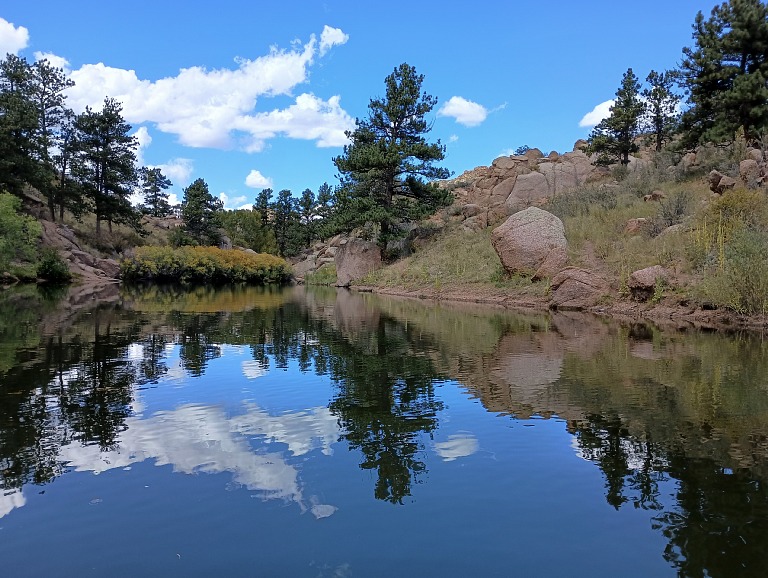 voda jak zrcadlo. Tady, ve Wyomingu. Mezi skalami jsem totiž neviděla, že se